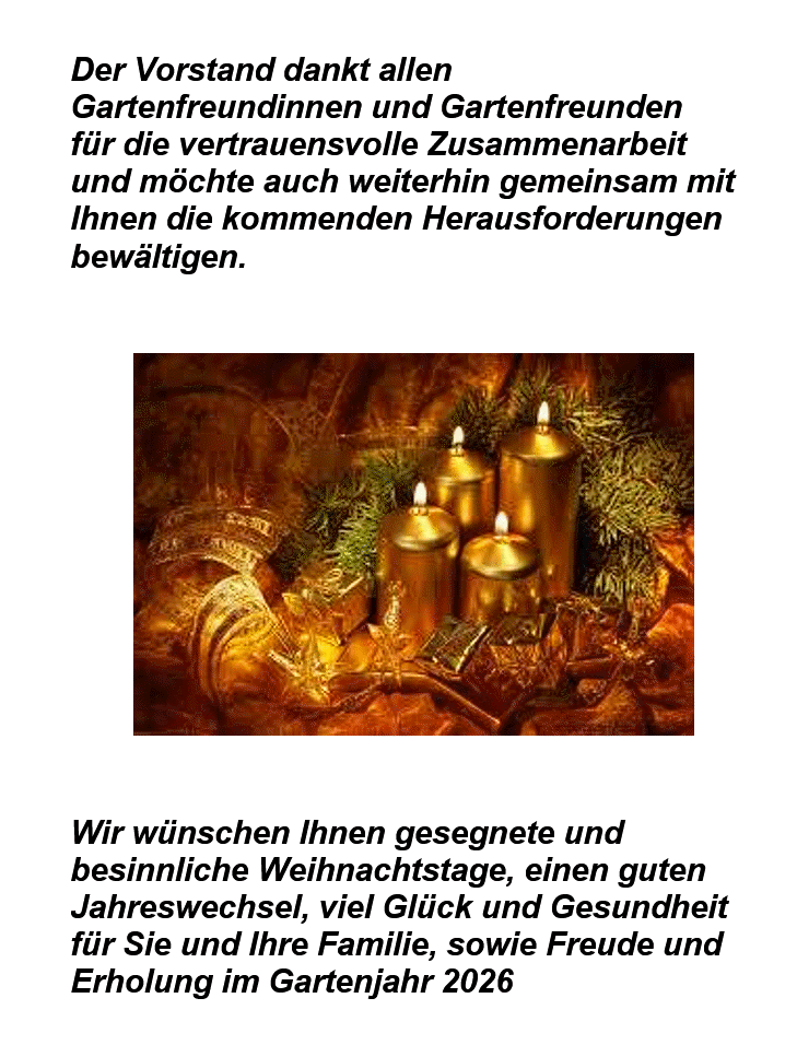 Folgen Sie uns durch die Webseiten. Wir bemühen uns, immer aktuelle Ereignisse unseres Kleingärtnerlebens im und um den Verein darzustellen. Die verschiedensten Dokumente und Infos finden Sie auf unseren Seiten und den Links. Wichtige Termine und Infos werden hier veröffentlicht. Aus Gründen des Datenschutzes finden Sie hier keine personenbezogenen Daten, wenn das Einverständnis der Betroffenen nicht vorliegt. Dafür bitten wir um Verständnis.
